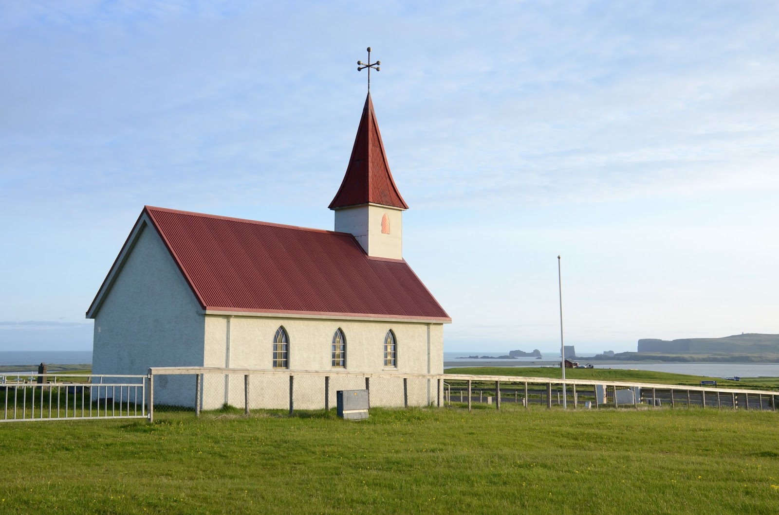 Finally after spotting our favorite birdies we moved on to the small village of Vík. With only less than 300 inhabitants, it’s still the biggest thing around in a while, thus we decided to fill up on some groceries there. After yet another (self made!) hot dog lunch, we took a last spin on the beach before hitting the road. Also, we made a quick stop at this typical little church on the hills of Vík. Along with its red roof, the endless wild flower fields all around it just added to its idyll. It’s worth the visit- if only to soak in the views (and taking photos)! Actually we read that when Katla erupts and most likely causes serious flooding, the church would serve as the safe haven for the people down in the village due to its higher location.